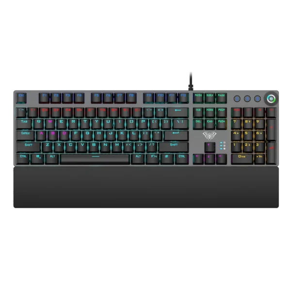 AULA F2058 Wired Mechanical Gaming RGB Backlight Keyboard With Media Knob & Handrest | Black, Blue Switch (F2058B)